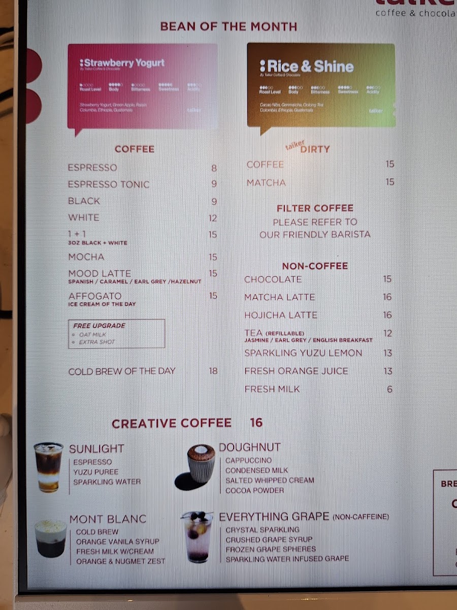 talker Coffee & Chocolate Menu